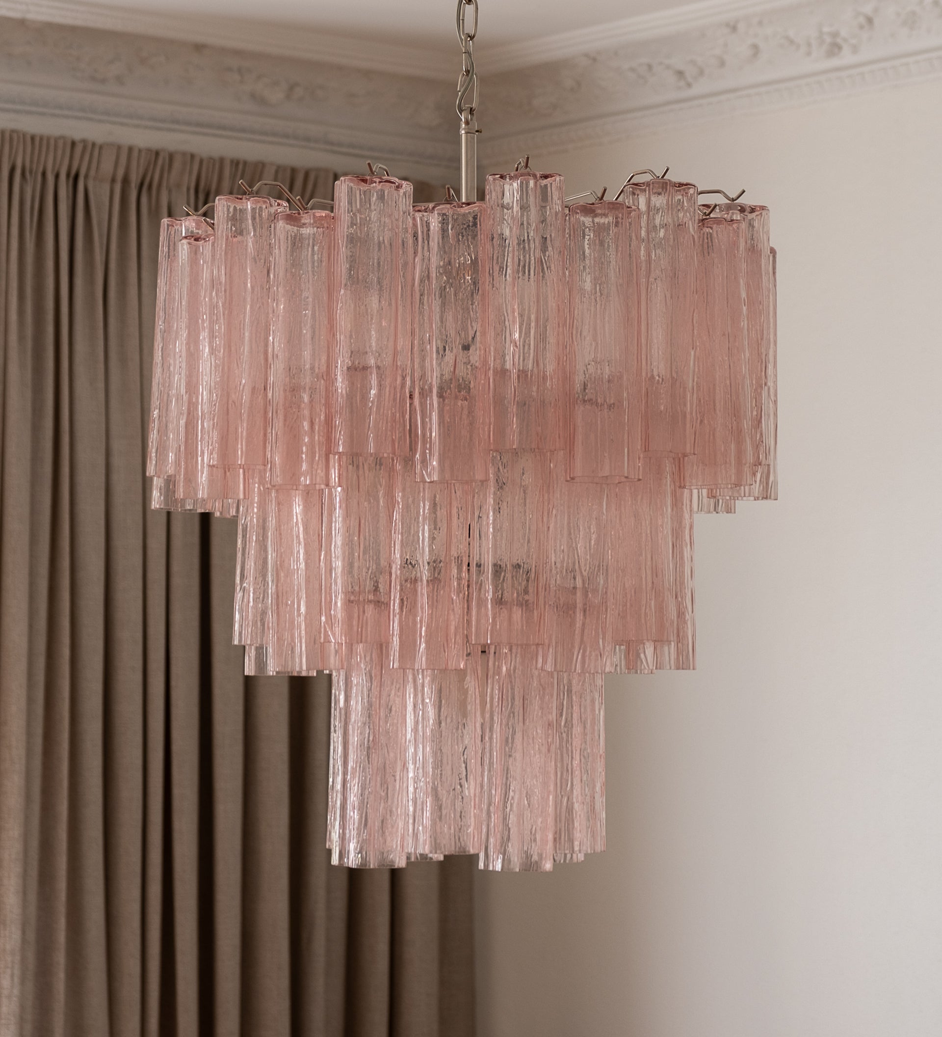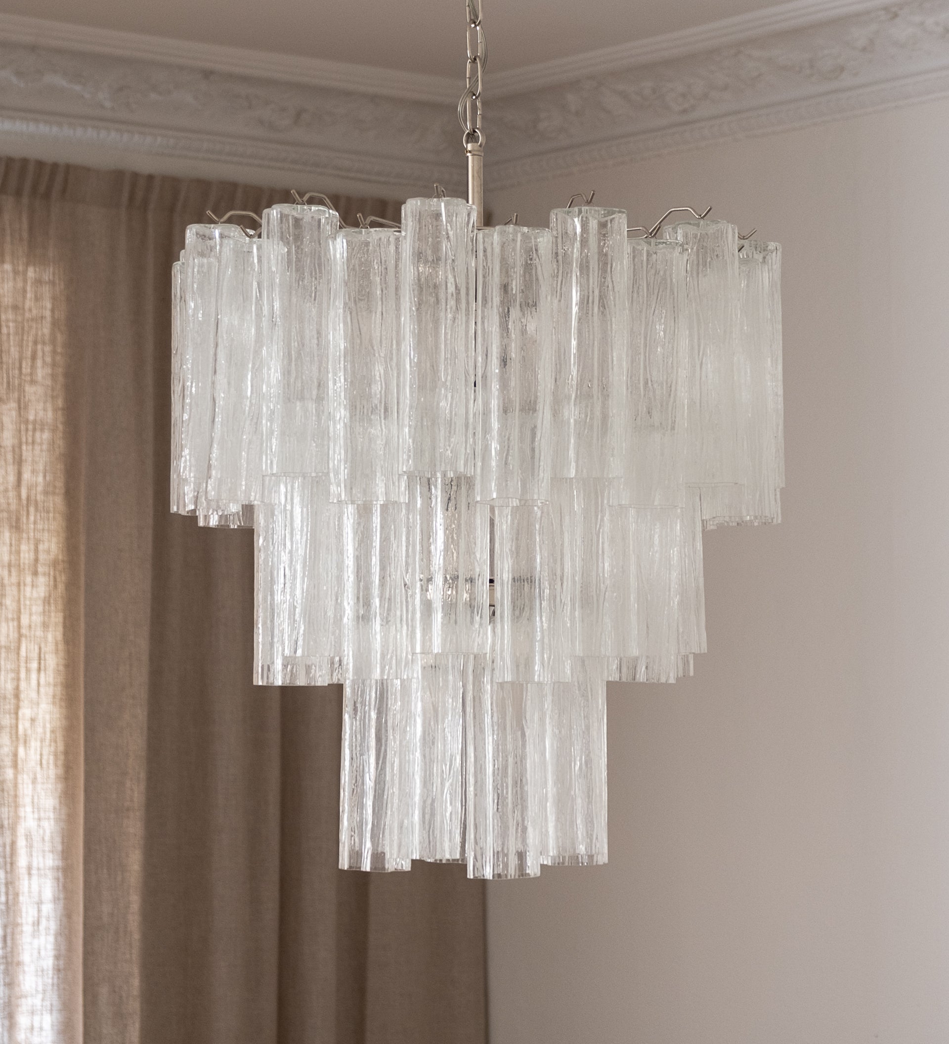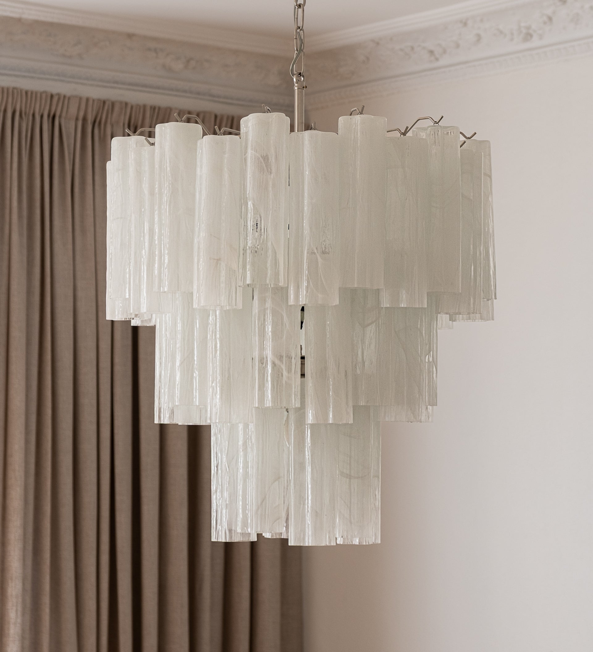 Our name, Astra, means "star" and is inspired by the shape of our bestselling Murano chandelier with "Tubular" glasses, which forms a star-like shape when viewed from below.