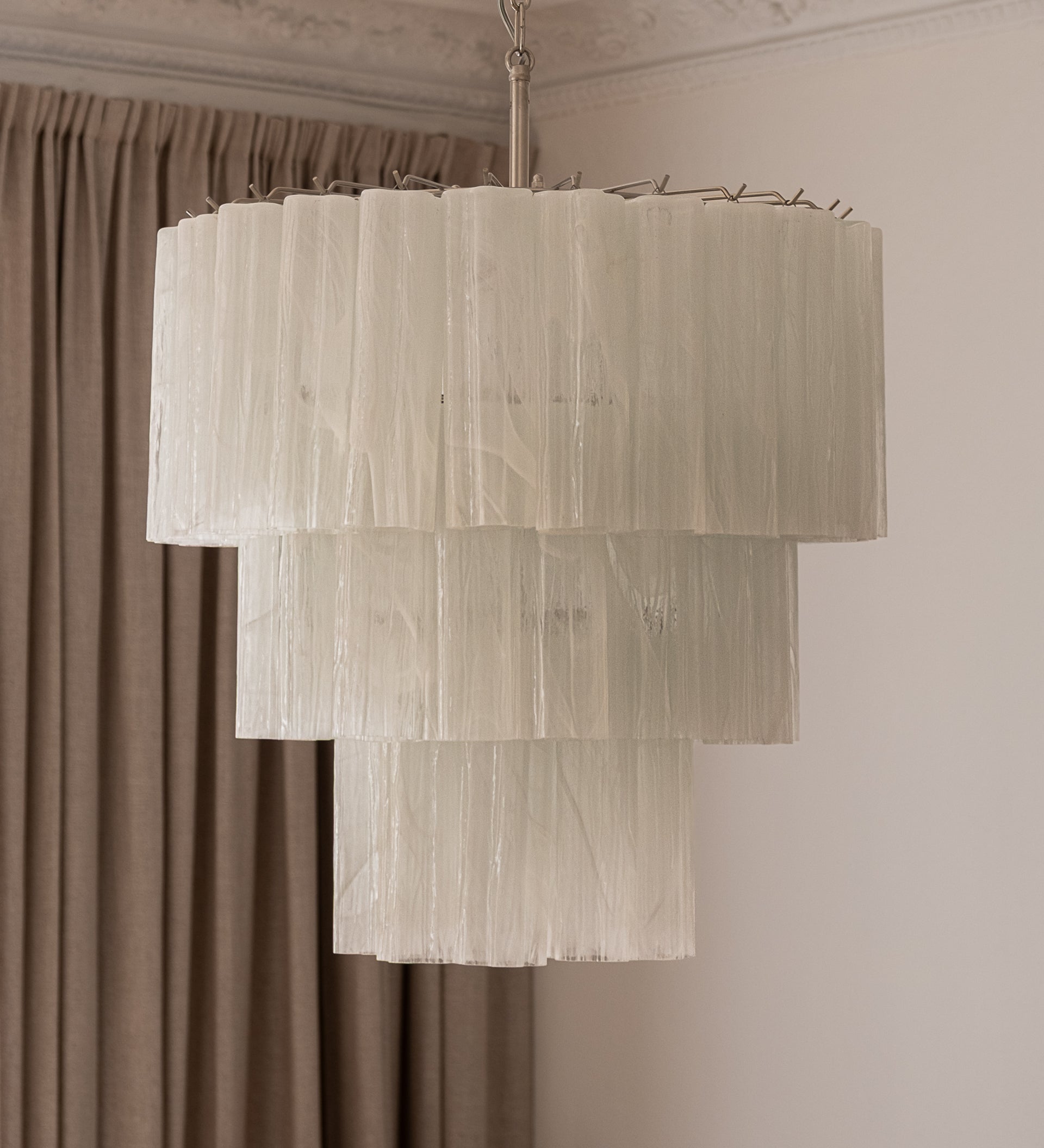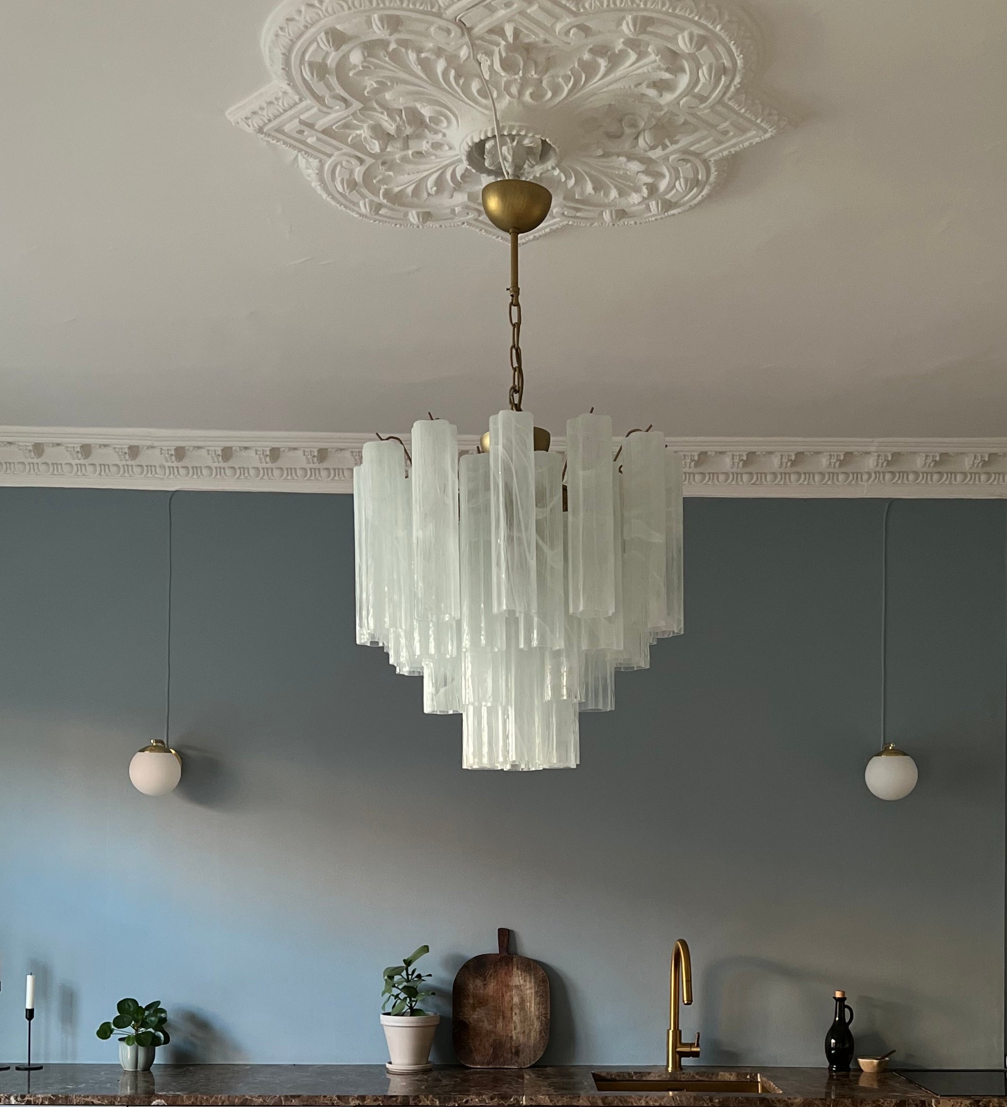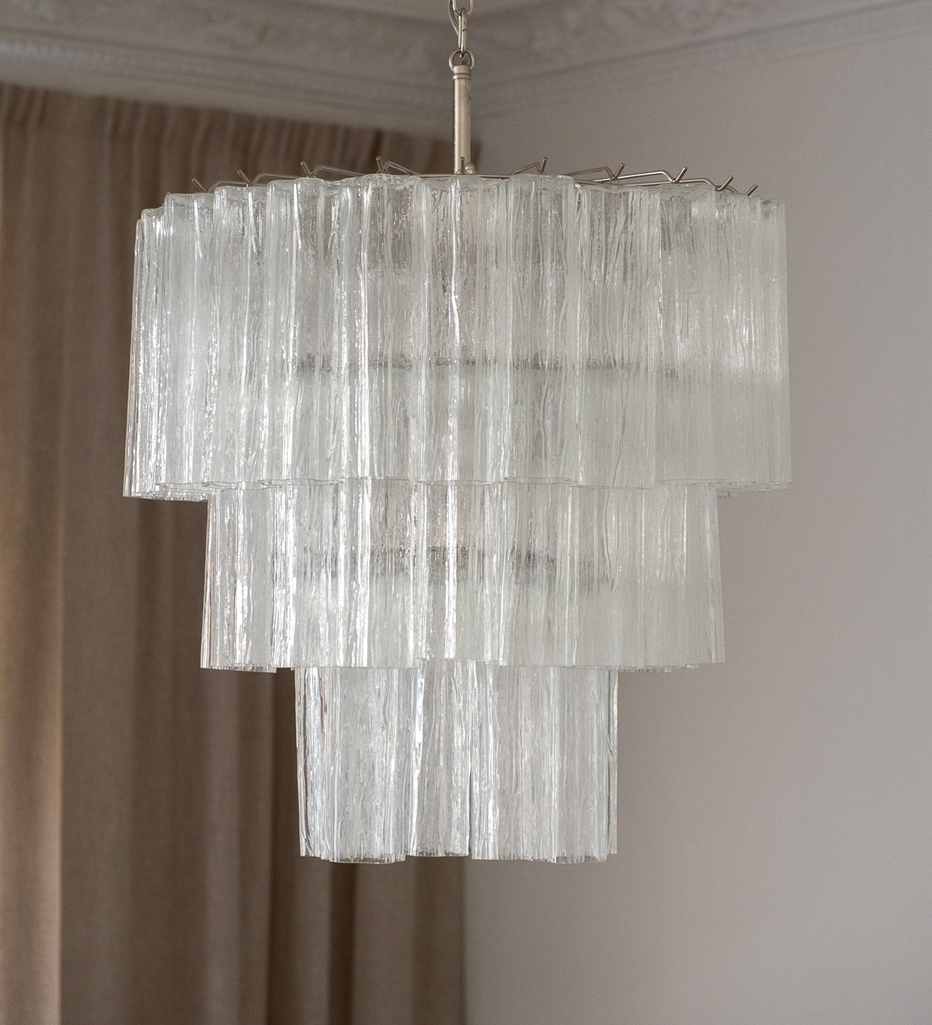 Our name, Astra, means "star" and is inspired by the shape of our bestselling Murano chandelier with "Tubular" glasses, which forms a star-like shape when viewed from below.