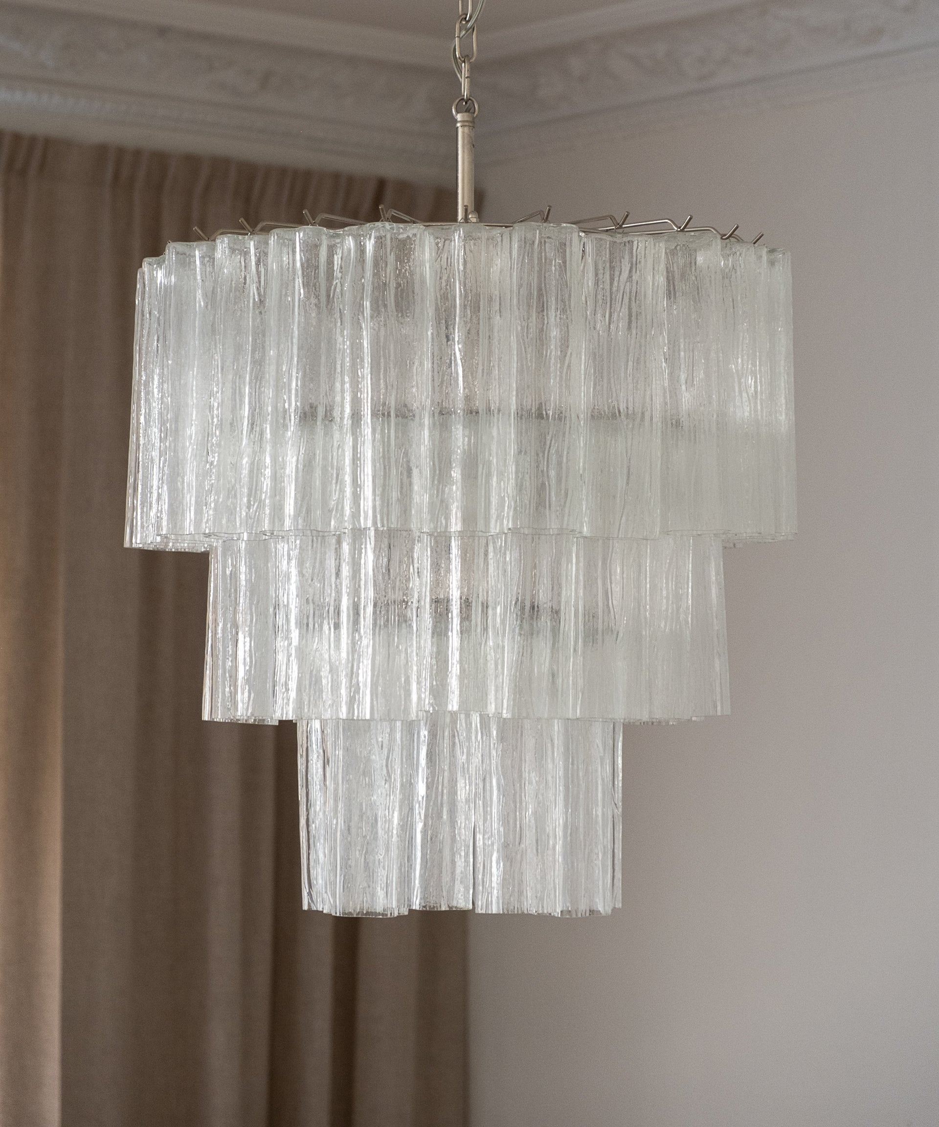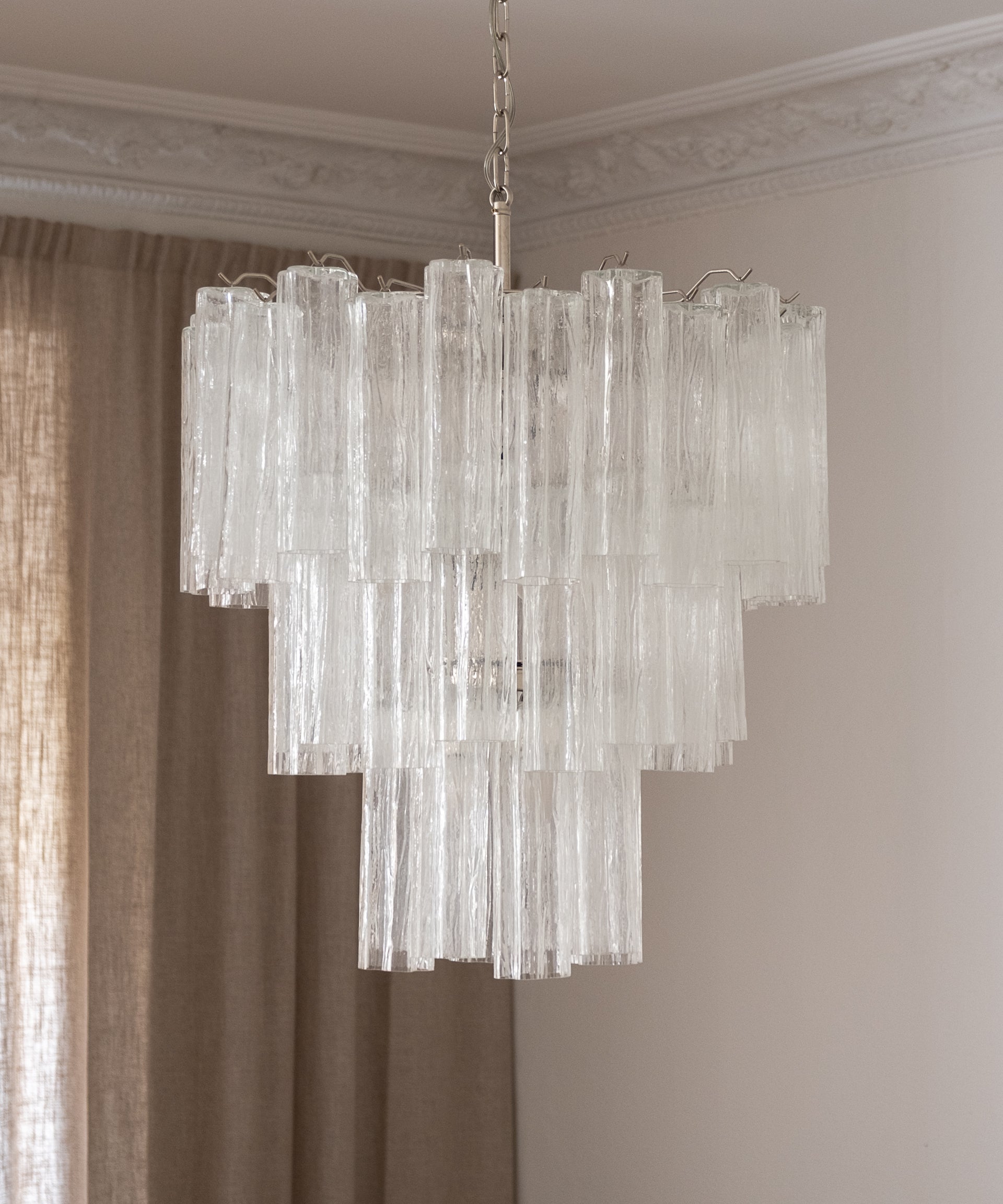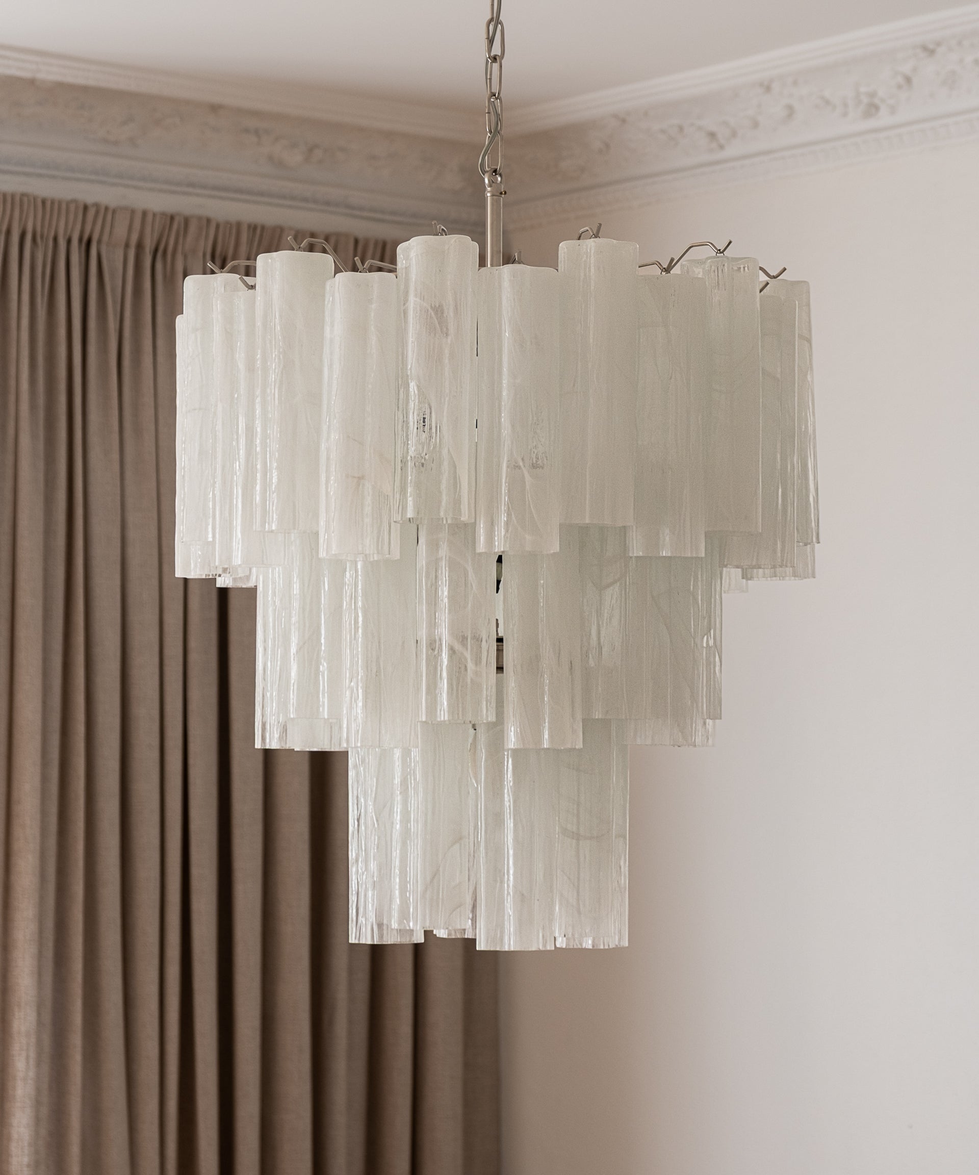 Our name, Astra, means "star" and is inspired by the shape of our bestselling Murano chandelier with "Tubular" glasses, which forms a star-like shape when viewed from below.