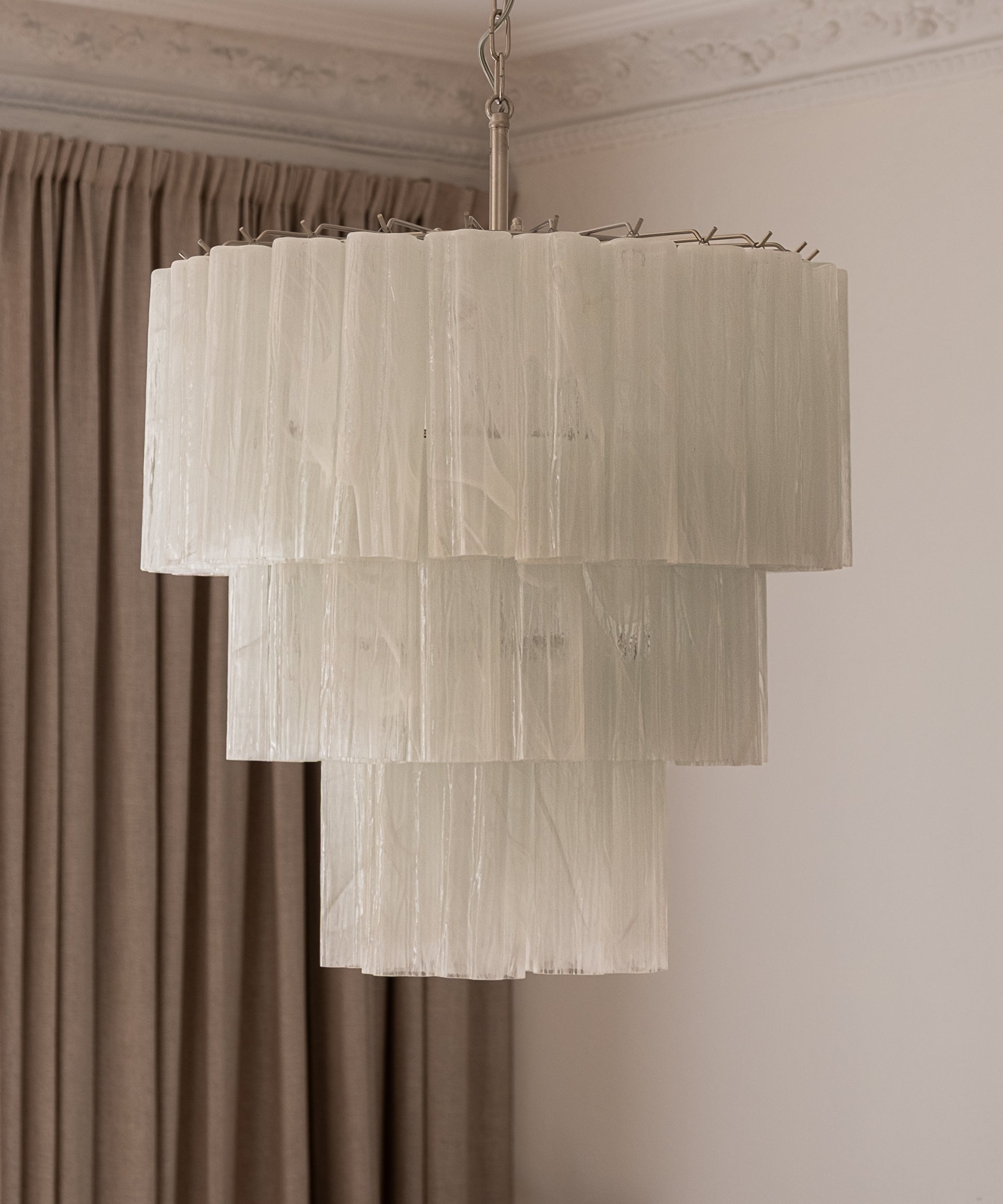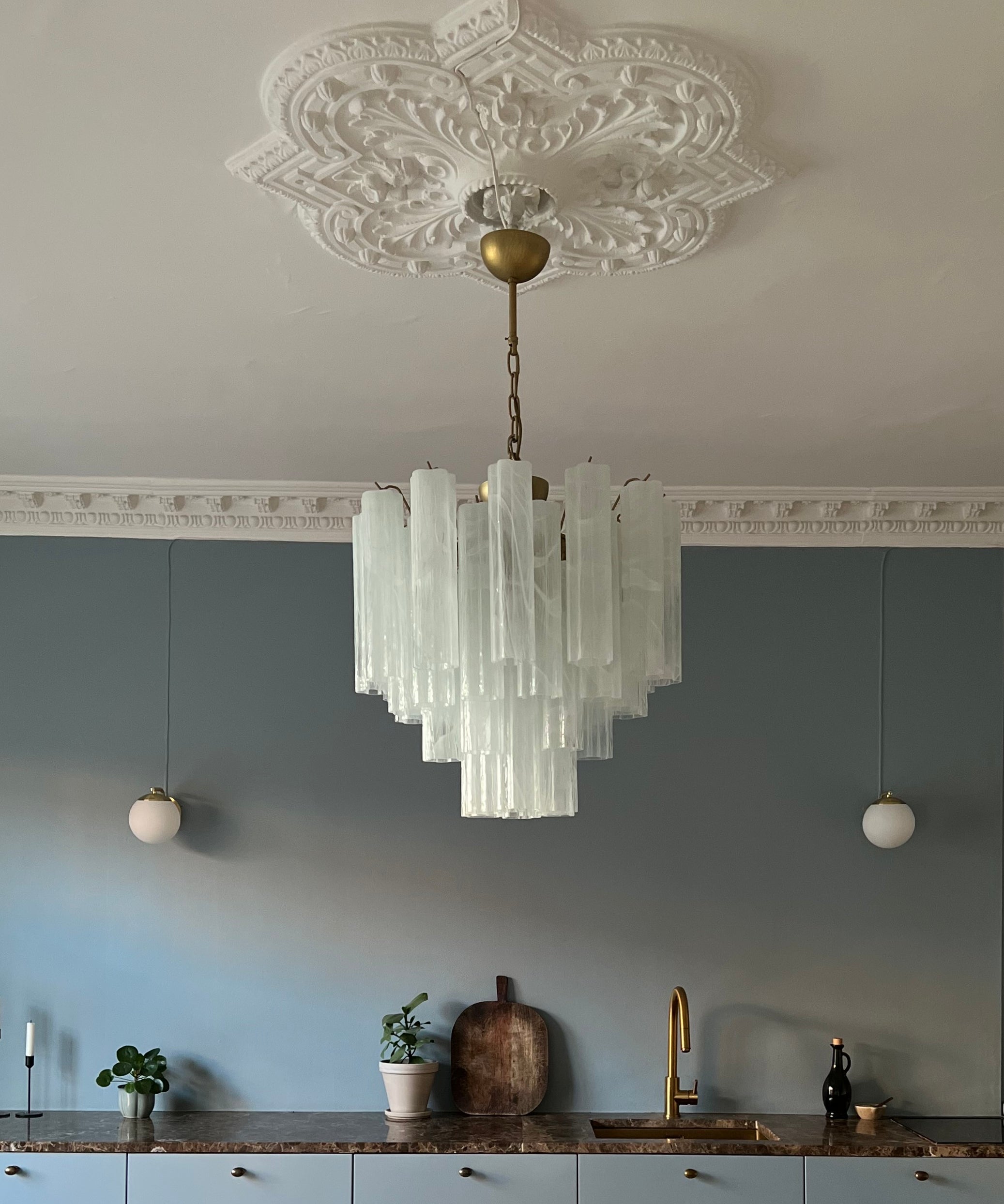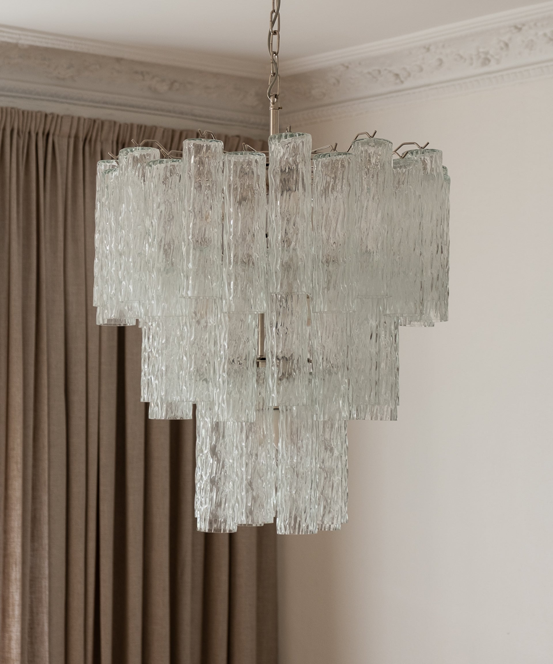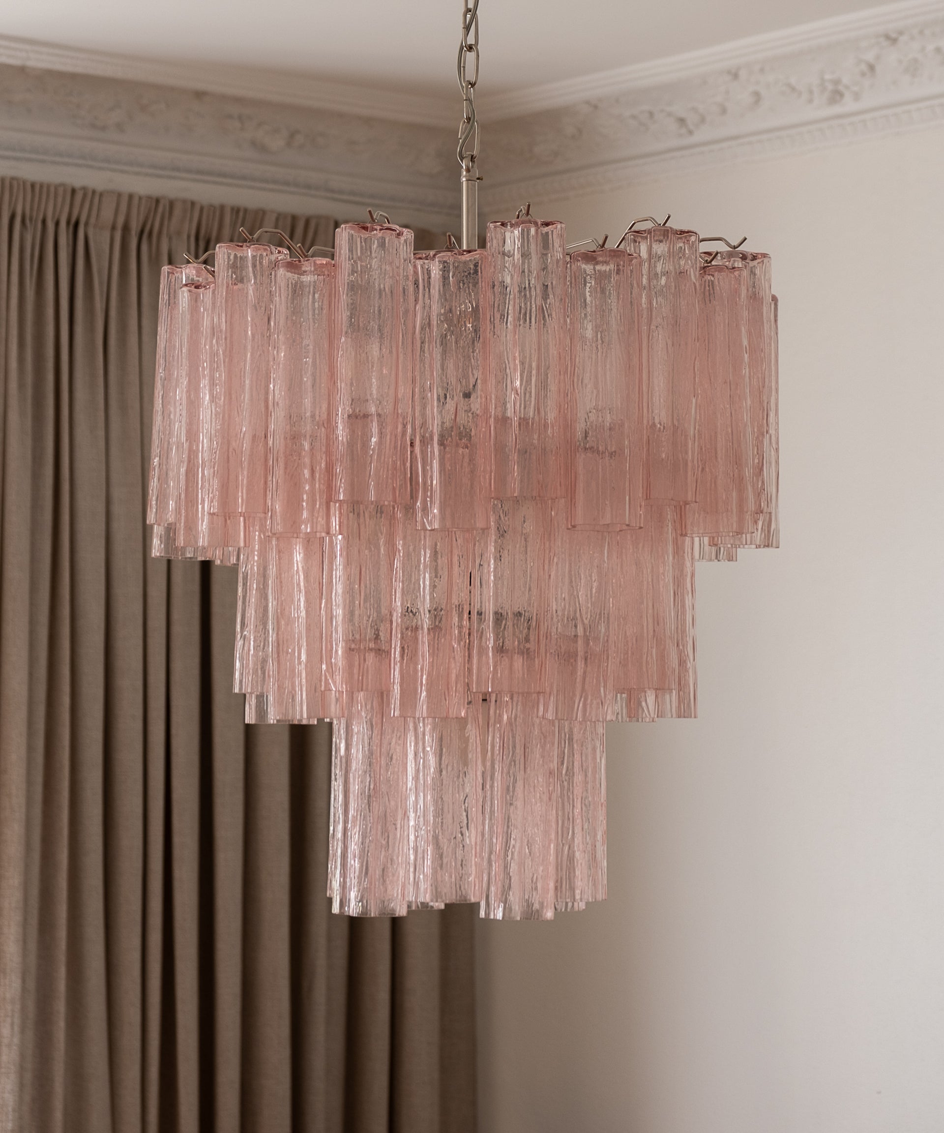 Our name, Astra, means "star" and is inspired by the shape of our bestselling Murano chandelier with "Tubular" glasses, which forms a star-like shape when viewed from below.